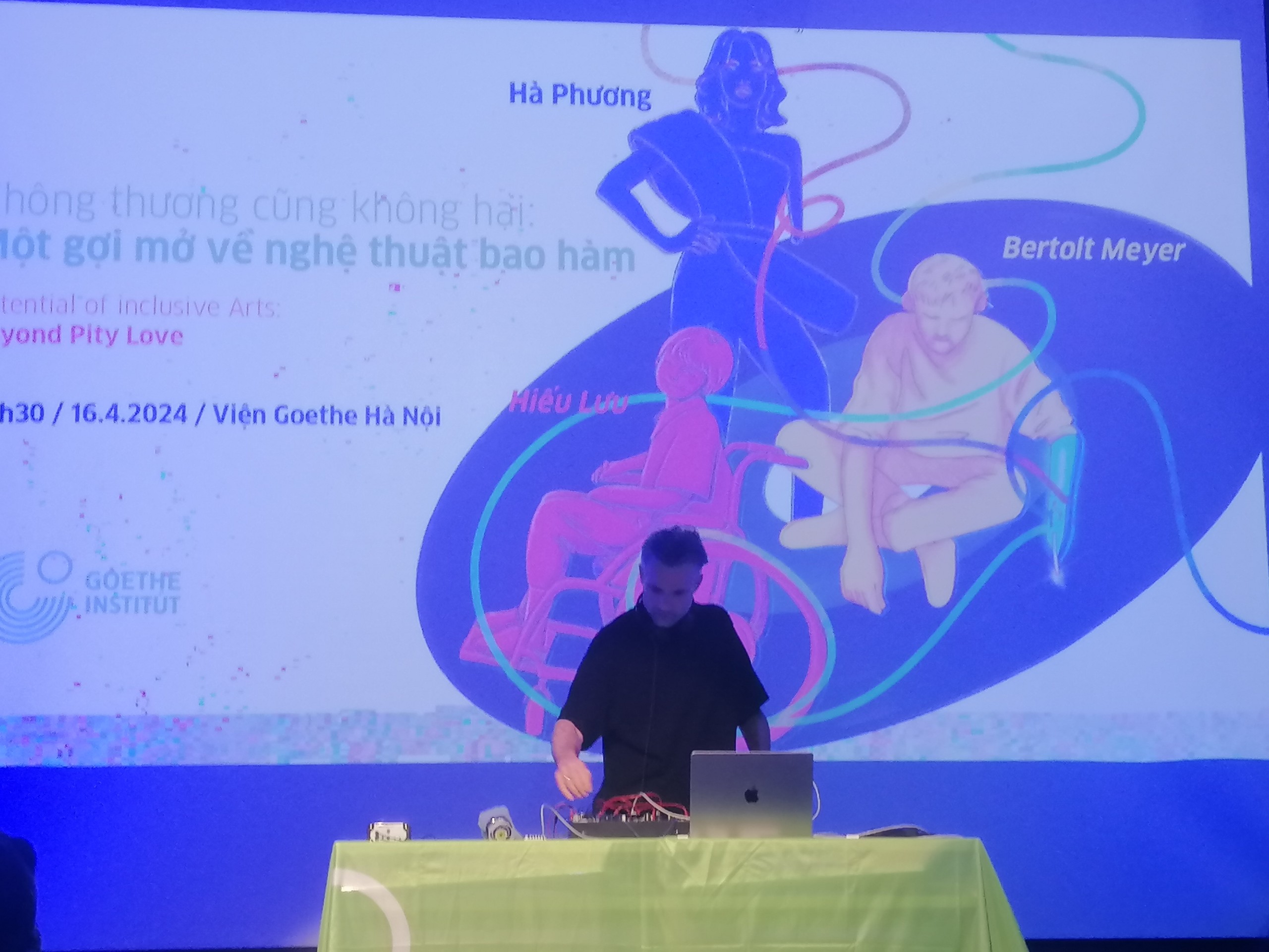 (VOVWORLD) - Das Goethe-Institut Hanoi wird in den kommenden Jahren einen Schwerpunkt auf inklusive Kunstpraktiken setzen. Inklusive Kunst bedeutet die hindernisfreie kulturelle Teilhabe aller Menschen, mit und ohne Behinderungen. Das Talkshow „Jenseits von Mitleid“ fand vor kurzem mit dem deutschen DJs Bertolt Meyer, der vietnamesischen Behindertenbeauftragten und Fotografin Luu Thi Hieu und der Schauspielerin Ha Phuong statt. Mit dieser Auftaktveranstaltung sucht das Goethe-Institut Hanoi nach neuen Partnern und lokalen Verbündeten in seinem Partnernetzwerk für weitere Projekte im Bereich der inklusiven Kunstpraxis.