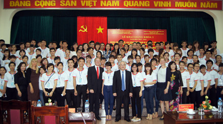 | Die Kandidaten machen Foto mit Vertretern des vietnamesischen Arbeitsministeriums, der deutschen Botschaft in Vietnam und des Goethe-Instituts Hanoi. (Foto: baolaodong.com.vn) |