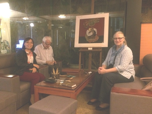 Professor Günter Giesenfeld und Übersetzerin Marianne Ngo (r.) beim Interview mit VOV-Journalisten in Hanoi.