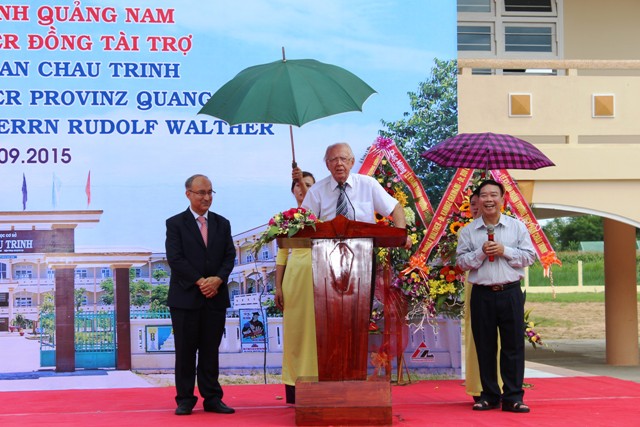 (VOVworld) – Anfang September ist der 92-jährige deutsche Unternehmer Rudolf Walther nach Vietnam gereist, um an den Einweihungsfeiern von zwei Schulen in Quang Nam und Ha Tinh teilzunehmen, dessen Bau er unterstützt hat. Diese beiden Schulen liegen in armen Regionen, die oft von Taifunen und Fluten bedroht werden. Die Schulen sollen auch als Zufluchtsort für die örtlichen Bewohner bei Fluten dienen.