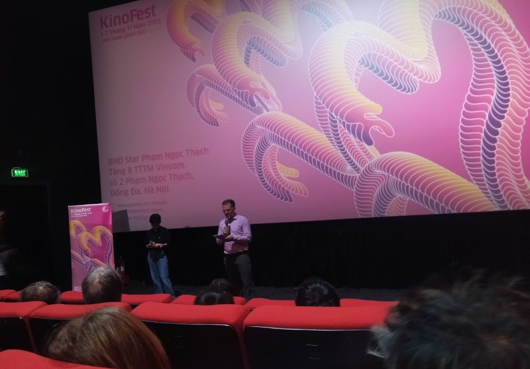 Der Leiter des Goethe Instituts Hanoi, Oliver Brandt, hält eine Rede auf der Eröffnung des Kinofestes in Hanoi.