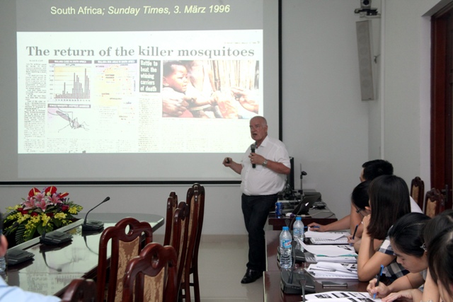 Professor Christian Meyer vom Bernhard-Nocht-Institut für Tropenmedizin aus Hamburg beim Kurs in Hanoi. (Foto: Militärkrankenhaus 108)