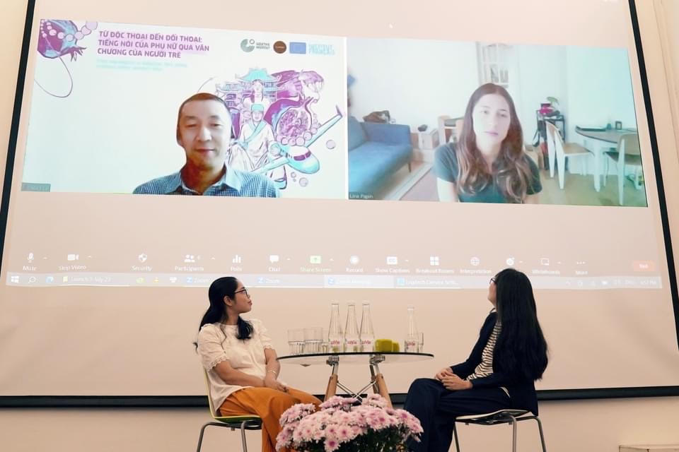Die Diskussion „Wie junge Schriftsteller die Stimme der Frauen reflektieren“. (Foto: Goethe Institut Hanoi) |
