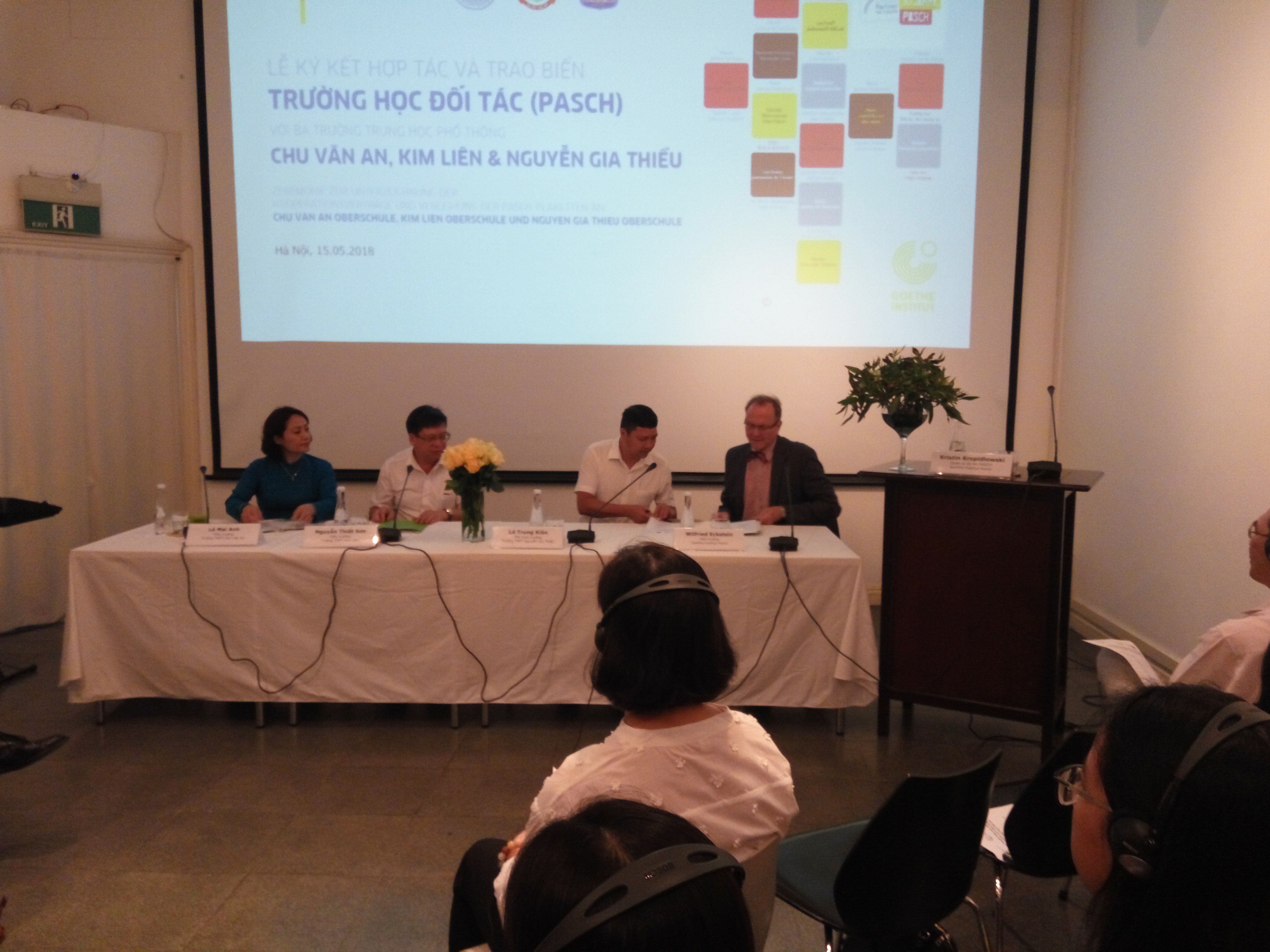 (VOVWORLD) - Im Goethe Institut Hanoi hat vor kurzem eine Feier zur Unterzeichnung der Kooperationsvereinbarungen zwischen dem Goethe Institut Hanoi und den drei Oberschulen Chu Van An, Kim Lien und Nguyen Gia Thieu stattgefunden. Demnach werden diese drei Oberschulen im internationalen PASCH-Netzwerk-die deutsche Initiative „Schulen: Partner der Zukunft“-aufgenommen. Durch diese Vereinbarungen wird beispielsweise die deutsche Sprache in diesen Schulen unterrichet, die die Menschen und die Kultur beider Länder näher bringen soll.