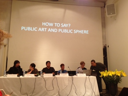 (VOVworld) – Mit dem Wunsch, künstlerische Projekte im öffentlichen Raum in Vietnam stärker bekannt zu machen hat das Goethe Institut Hanoi in Zusammenarbeit mit Manzi ein Künstler- und Kuratorengespräch organisiert. Kuratorin Lena Prents und zwei indonesische Künstler stellten ihre Public Art-Projekte vor und diskutierten über die Rahmenbedingungen und über kulturell unterschiedliche Konzepte von öffentlichem Raum. Das war auch eine gute Chance für vietnamesische Künstler, Erfahrungen ausländischer Künstler in diesem Bereich zu sammeln.