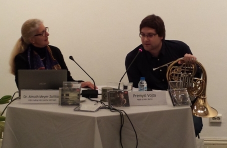 | Hornist Přemysl Vojta beim Musikergespräch im Goethe Institut. |