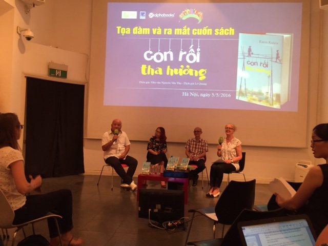 | Die Präsentation des Romans „Sungs Laden „ oder auf Vietnamesisch „Eine heimatlose Wasserpuppe“ der deutschen Schrifstellerin Karin Kalisa im Goethe-Institut Hanoi. |