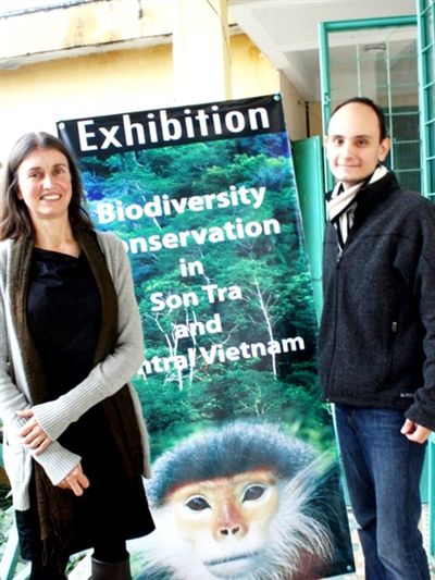 | Frau Doktor Ulrike Streicher und ihr Mann, Larry Ulibarry, bei der Fotoausstellung über die Natur und Tiere in Son Tra. (Foto: tinmoi.vn) |