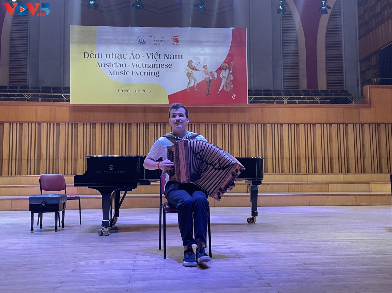 Der österreichische Akkordeonist Jakob Steinkellner in Hanoi.