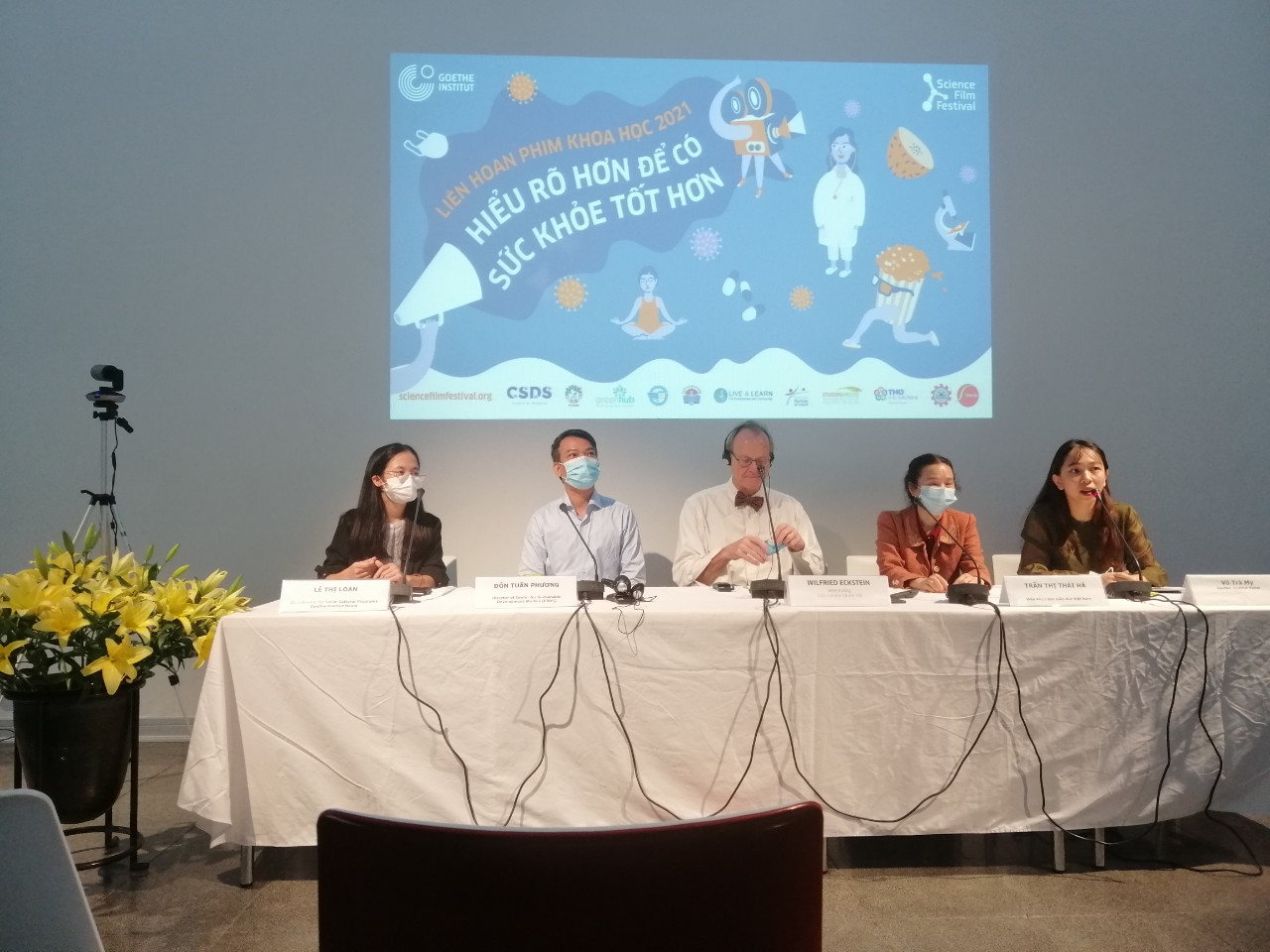 Die Pressekonferenz über das wissenschaftliche Filmfestival 2021 im Goethe Institut Hanoi. |