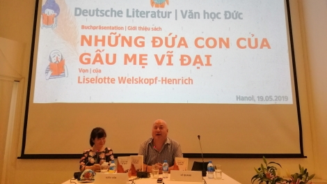 (VOVWORLD) - Die Buchpräsentation „Die Söhne der Großen Bärin“ im Goethe Institut Hanoi hat vor kurzem im Themengebiet deutsche Literatur auf dem Festival der Europäischen Literaturtage 2019 in Vietnam stattgefunden. Dabei weckte das Werk der deutschen Schriftstellerin Liselotte Welskopf-Henrich das Interesse zahlreicher Leser unterschiedlichen Alters. „Die Söhne der Großen Bärin“ gehört zu der erfolgreichsten Jugendbuchreihe der DDR und hat zahlreiche wertvolle Literaturpreise erhalten. Die Buchpräsentation galt als ein Geschenk für das vietnamesische Publikum, um eine Reise zurück in die Kindheit zu machen.