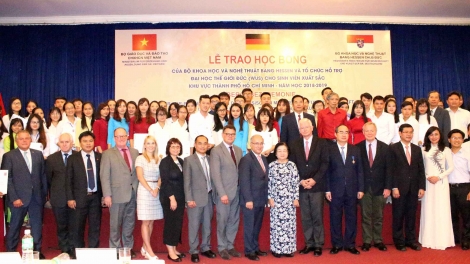 (VOVWORLD) - Die Stipendien des hessischen Ministeriums für Wissenschaft und Kunst und des World University Service werden seit 25 Jahren an vietnamesische Studierende überreicht; sie sind damit eines der längsten Stipendienprogramme in Vietnam. Aus der Idee zur Unterstützung für Studierende mit einer kleinen Geldmenge von 12 DM, also damals für ein Paar Kinokarten in Deutschland, ist inzwischen ein Stipendium von 216 Euro geworden.