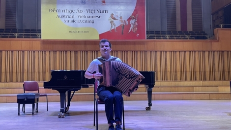 (VOVWORLD) - Zum Anlass von „Europe Village“ in Hanoi ist der österreichische Akkordeonist Jakob Steinkellner Konzerte nach Vietnam gekommen, um Konzerte in Ho-Chi-Minh-Stadt, Da Nang und Hanoi zu machen. Das ist das erste Mal, dass der 28-jährige Musiker Vietnam besucht hat. Für ihn ist es eine große Ehre, die selbst geschriebenen Stücke mit dem Stil der österreichischen Volksmusik dem Publikum in Vietnam vorzustellen. VOV hat mit ihm gesprochen.