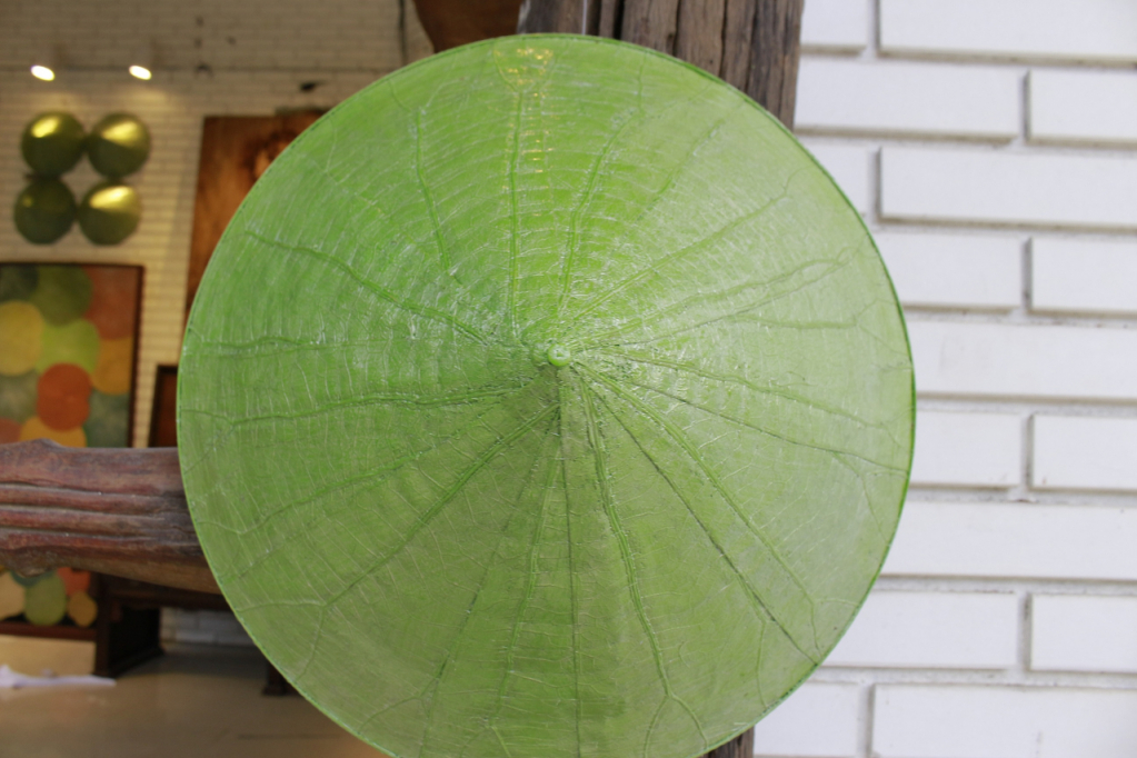 „Ich habe die Eigenschaften verschiedener Blattarten erforscht. Früher produzierte ich Souvenirs aus Blättern der Pappel-Feige. Derzeit verwende ich Lotusblätter. Am Anfang stellte ich Bilder aus Lotosblättern her. Als ich Lotusblätter erforschte, erkannte ich, dass dieses Material zur Herstellung von Kegelhüten geeignet sei.”