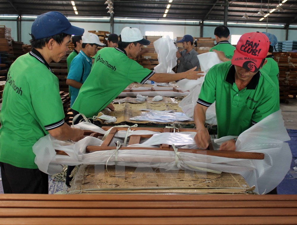| Verpackung der Holzprodukte für den Export. (Foto: Ly Kha/VNA) |