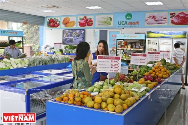Die Union der Genossenschaften Vietnams hat die Marktkette UCA Mart gegründet, um die Entwicklung der landwirtschaftlichen Produkte sowie deren Verkauf zu fördern. Die Union arbeitet mit mehr als 100 Genossenschaften in verschiedenen Provinzen zusammen, die sichere Landwirtschaftsprodukte herstellen. Die Herkunft aller Produkte wird auf dem Etikett gegeben. Pham Manh Tuan, der Vorstandsvorsitzende der Union der Genossenschaften ist der Meinung, in Vietnam gebe es derzeit hunderte Genossenschaften, die sicheres Gemüse produzieren. Aber diese Genossenschaften hätten noch keinen festen Platz auf dem Markt, wegen der starken Konkurrenz und der Steigerung von unsicheren Lebensmitteln. Deshalb ist die Marktkette UCA Mart eine Verbindung zwischen den Produkten der Bauern und den Verbrauchern geworden, so Tuan: