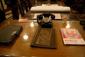 Many objects used by General Ninh and his comrades during the war such as telephones, maps, trays and tea sets are now on display in the underground bunker.