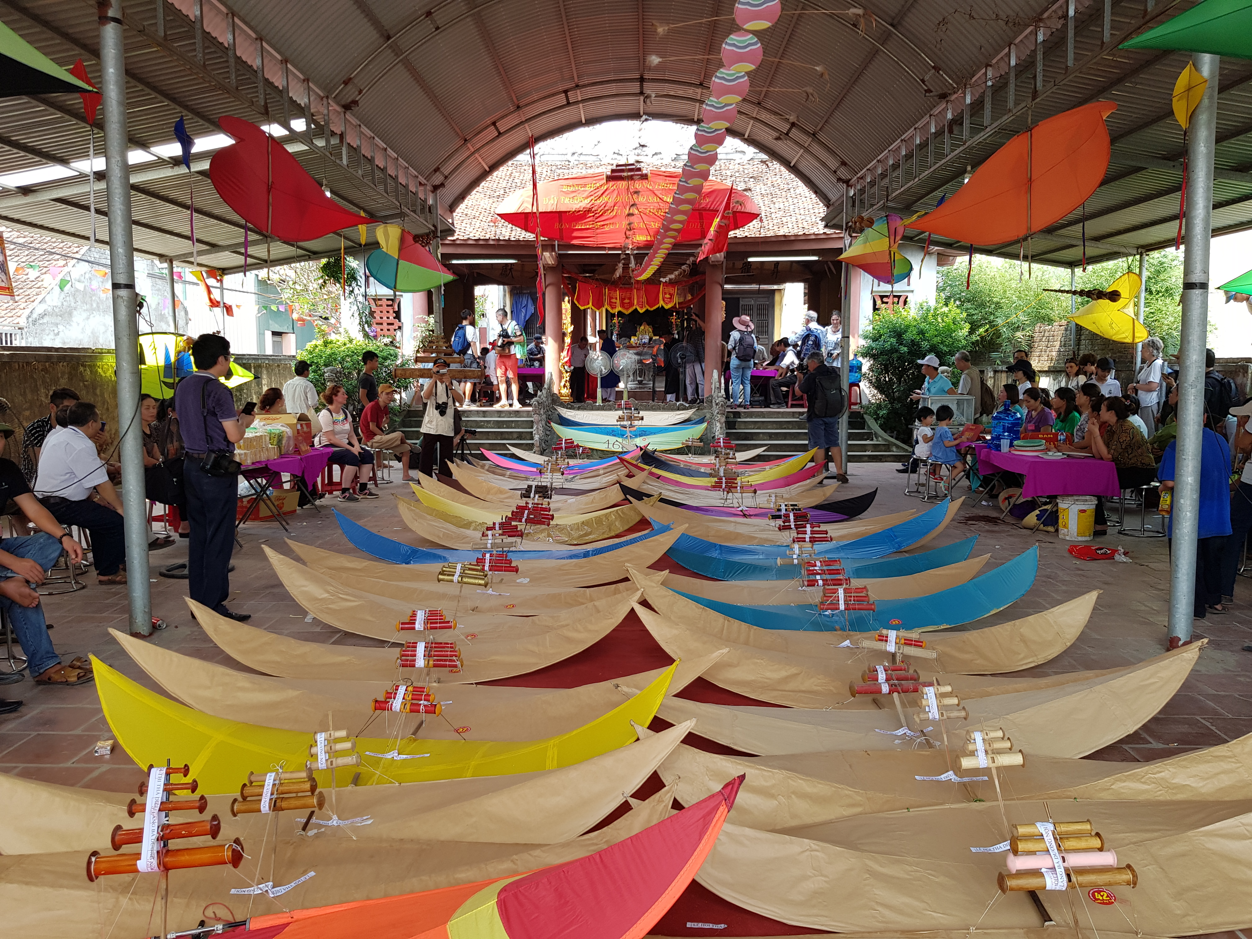 The morning of the festival a ritual incense offering is conducted at the village temple to worship delta deities. All contestants present their kites to the deities before bringing them to the field. Kite flying is done in the afternoon from 2 p.m. to 5 p.m..