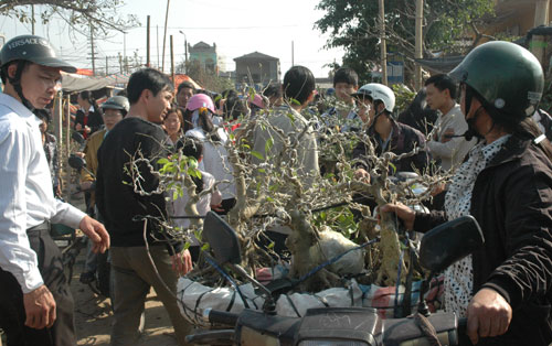 Since the afternoon of the 7th day of the first lunar month, which falls on February 6th this year, people from the northern provinces flock to Vieng market in Nam Dinh province. Nobody knows when the tradition began. There are actually two Vieng markets in Nam Dinh- Vieng Phu market in Kim Thai commune, Vu Ban district and Vieng Chua market in Nam Giang township, Nam Truc district. According to local elders, the Vieng market meets just once in the early year and provides an opportunity for boys and girls to meet each other. At the Vieng market boys and girls hope to find partners as well as something to bring them luck for the whole year. Nguyen Tien Dung lives in Nam Giang township, Nam Truc district: “The Vieng market has long been considered the market of luck, where people come to buy luck without bargaining. Potatoes, vegetables, peanuts, and farm tools are for sale here. Some products are bartered without money. Some people have vegetables, some have shovels, and others have ploughs. They trade with one another, with no mention of price”.
