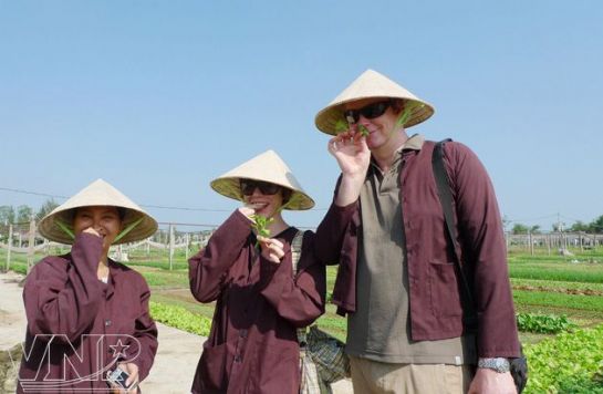 Tra Que village is not included in package tours, but it’s still a popular destination for Hoi An tourists. Vuong Hoang is Director of the Cu Lao Cham Tour Company: “Most tourists enjoy this tour because it’s a new experience for them. The vegetable village is an attraction for them. They’re willing to spend 40 to 50 USD to be a farmer. Vegetables here are naturally grown with algae so they have a special scent”.