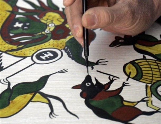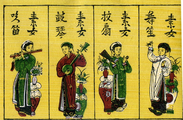 Dong Ho folk paintings feature 180 topics in 5 categories: worshipping, history, blessings, daily use and story telling. Topics of the paintings include people’s daily activities and production. They portray legendary characters, landscapes, and activities that imply wishes for happiness, wealth, bumper crops and effective husbandry. Mr. Sam again: “Dong Ho paintings celebrate daily activities such as husbandry and wish for prosperity and success”.
