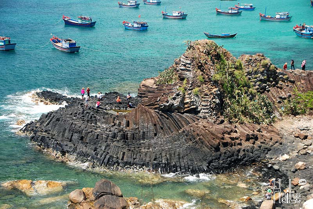 Close to these rocks is a beautiful beach with turquoise waters known as "Almond beach", where almond trees grow wild everywhere. Hoang Thanh Tung says:"The rocky slope of Da Dia and the Almond Beach have now become a tourist attraction of Phu Yen province. Scuba diving is another interesting activity not to be missed. The dive site is located 10 km from the beach. No need for a wetsuit, just a goggle to see with your own eyes corals of all colors. "