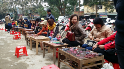 Luc Yen district was blessed by nature with a large deposit of gemstones. In a corner of Yen The town, there is a gemstone market which is open from 7:00 am to 10:00 am. 20 stalls sell both cut and uncut stones costing anywhere from a few hundred thousand dong to hundreds of millions of dong. There are all kinds of stones - precious stones like rubies, sapphires and emeralds and semi-precious stones like quartz and amethyst. Shops selling stone pictures attract a large crowds of customers. Le Nguyen Duc is a tourist from Hanoi: "The stone pictures in Luc Yen are beautiful. I like the pictures of rural landscapes and horses. I bought a few as souvenirs. "