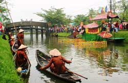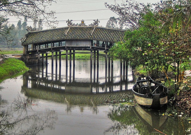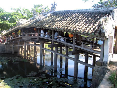 Thanh Thuy village is famous for its 200 year old Thanh Toan tiled roofed bridge, which is 17 m long, 4 m wide and divided into 7 sections. The wooden bridge was built in 1776 and is roofed with tubes. The historic bridge has become a popular tourist attraction. Beside the bridge is a gallery featuring farm tools such as ploughs, shovels and rice fan machines. The life of rural people in the central region and their daily activities such as rice grinding and weaving are recreated in this small gallery. Visitors can practice farming, learn to make rice cakes or row a boat along the river. Duong Thi Cong Ly, Director of the Vietnam Tourism Joint Stock Company in Hue says: "Tourists like this village because it retains typical characteristics of an ancient central region village. Our company offers one-day or half- day tours of the village. Tourists can drive a motorbike around the village. Our tours cost from 15 USD to 40 USD including meals and a homestay".