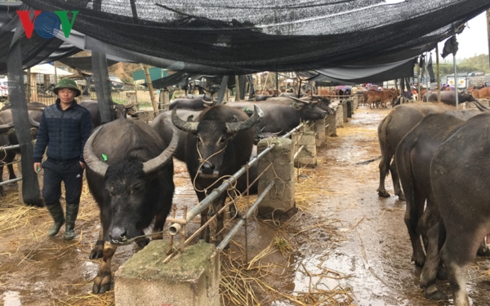 Buffalos, cows, and horses are sold at Tra Linh market. (Photo: Duy Thai)