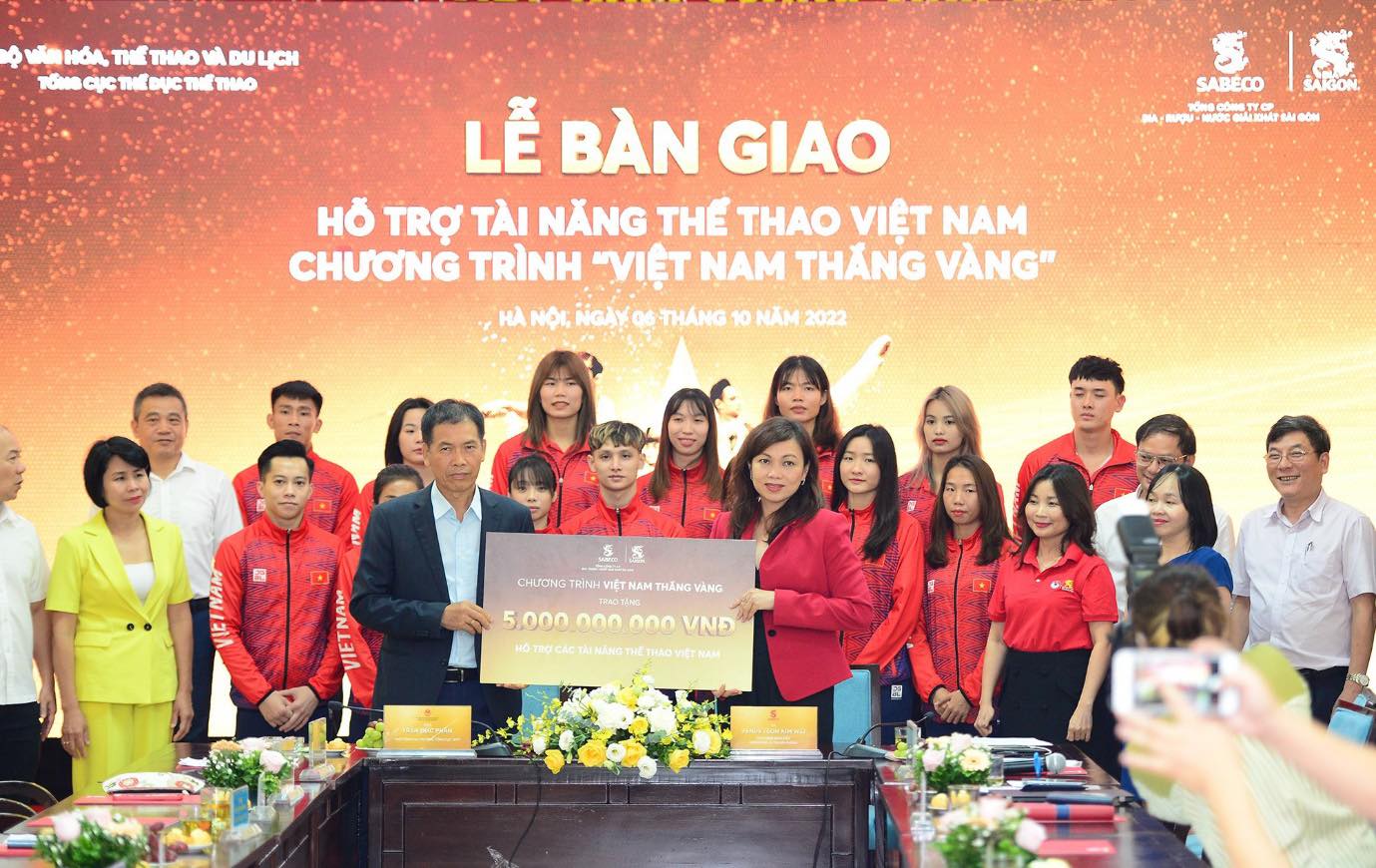 SABECO handed over 5 billion VND to the Vietnam Administration of Sports (VSA) under Ministry of Culture, Sports and Tourism (MoCST) on October 6th to support Vietnam’s national athletes.
