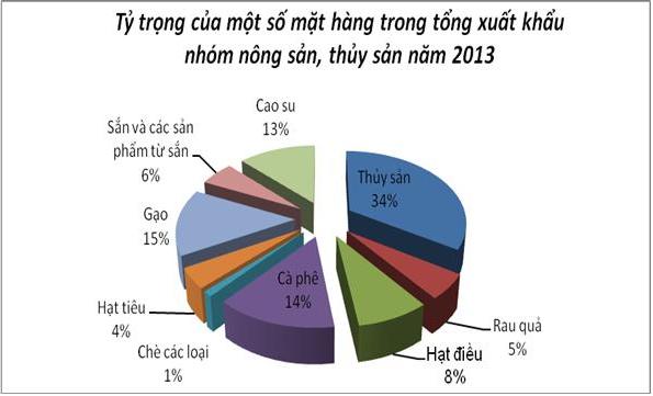 | The portions of several export items in the total exports of farm agricultural, forestry, and aquatic products in 2013 (Photo: moit.gov.vn) |