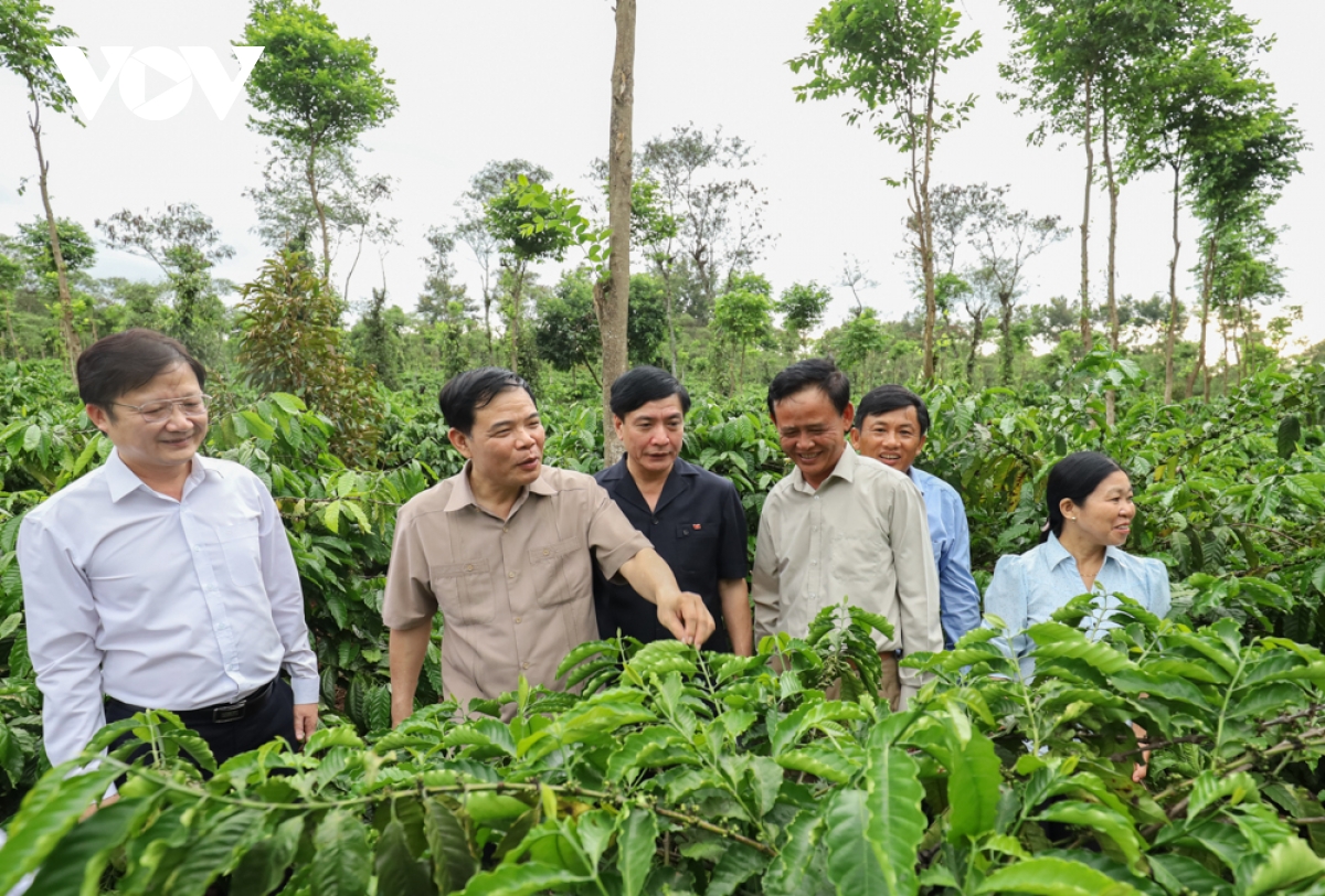 Minister of Agriculture and Rural Development Nguyen Xuan Cuong (second from left) visits a high-tech coffee cultivation model in Cu Mgar district, Dak Lak province. |