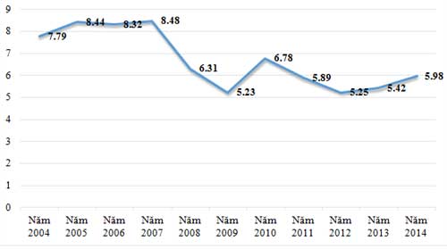 | Vietnam’s economic growth from 2004 to 2014 (Unit: %). (Photo: General Statistics Office of Vietnam 2014) |