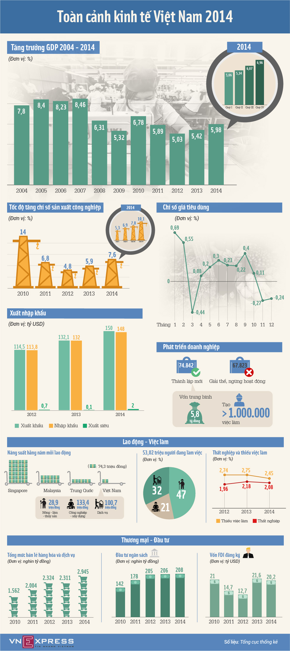 ![]() The overview of Vietnam's GDP growth from 2004 to 2014 |