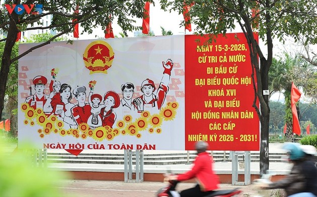 (VOVWORLD) - In early March, streets across Hanoi are filled with red national flags, banners and posters ahead of the general election on March 15, 2026. From major roads to residential areas, excitement has gone high.