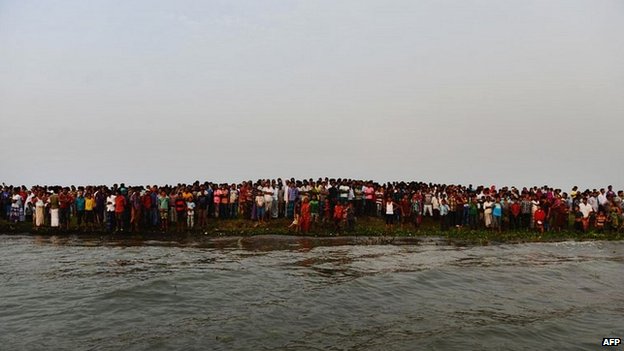 Hundreds of local residents gathered on the bank of the river to wait for news of the missing passengers