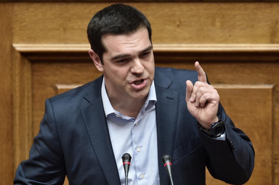 | Greek Prime Minister Alexis Tsipras addresses a parliament session in Athens on March 30, 2015 (AFP Photo/Aris Messinis) |