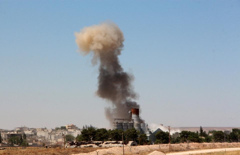 | Smoke billows from the Syrian town of Kobane, as seen from the Turkish side of the border in Suruc in Sanliurfa province on June 25, 2015 (Photo:AFP) |