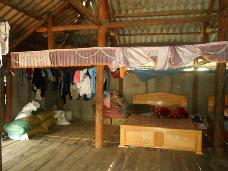 La sala de estar de la casa sobre pilotes de los Thai negros ahora está