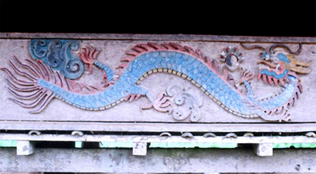 La figura de dragón grabada en relieve en la fachada de la casa "Gươl"