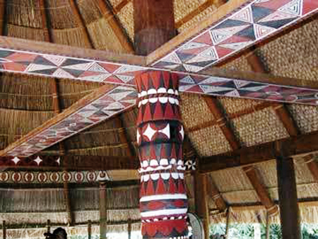 En la arquitectura tradicional, la casa “Gươl” es una vivienda sobre pilotes, de los cuales el del medio es el pilar principal, apoyado por otros 8 postes en su alrededor. El techo se elabora de hojas de palmito y tiene la forma de mango si se ve desde lejos. Las paredes son obras grabadas en relieve con figuras vivas de animales como búfalos, salamandras, pitones, iguanas e incluso imágenes de las actividades cotidianas de la comunidad, tales como un hombre tocando el tambor y una mujer llevando en brazos su bebé. En la casa “Gươl”, se presentan también diferentes instrumentos musicales y herramientas tradicionales, así como calaveras de los animales sacrificados en los ritos. En la vida cotidiana, esta construcción simboliza el poder de la aldea. Cuanto más grande la obra más influencia tiene la villa. El patriarca Y Kong, del pueblo Tong Coi, comuna Ba, distrito Dong Giang, provincia central de Quang Nam compartió: “La casa “Gươl” es una obra tradicional de los Co Tu. Si una aldea no la tiene, pierde su origen. Por lo tanto, todos los lugareños colaboran codo a codo para construir una que cuesta al menos 300 millones de dongs (equivalentes a 14.162 mil dólares estadounidenses). Esto quiere decir que los esfuerzos aldeanos son incalculables”.