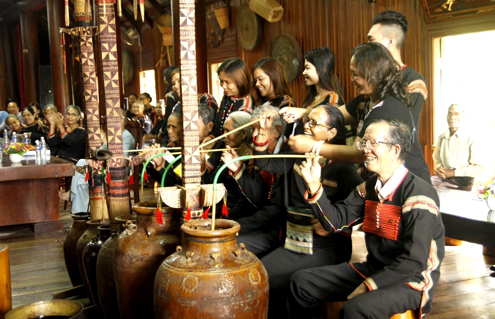 Para los ancianos Ede, esta es una actividad de gran significado. Para los jóvenes, es también un motivo de alegría. El festejo les brinda la oportunidad de experimentar y sentir las costumbres culturales únicas de su pueblo. H Zu Ni Nie, una nieta de la anciana Ho Goc Nie, compartió lo siguiente: “Hoy vengo a participar en la celebración de la salud de mi abuela. Me siento muy alegre. Asisto a los rituales deseando una muy buena salud para ella, y que tenga una vida larga y feliz junto a nosotros”.