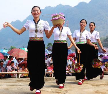(VOVworld) – Los que llegan a la zona del noroeste de Vietnam no sólo tienen la oportunidad de contemplar paisajes pintorescos de bosques rebosantes de flores como las bauhinia blanca, ciruela y melocotón sino también de sorber “rượu cần” (aguardientes originales consumidos con pajas largas de bambú) y presenciar los movimientos de las muchachas de la minoría ética Thái al interpretar el baile “xòe”. Esta danza no se limita a la ejecución de pasos acompasados, sino que contiene también un lenguaje para expresar el sentimiento humano.
