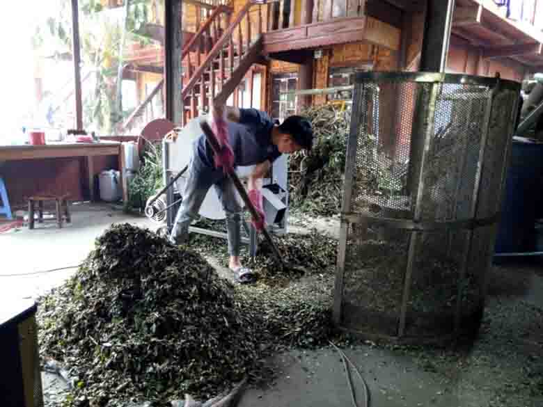 El director de la empresa SAPANAPRO, Ly Lao Lo, y el personal sopesan la cantidad de plantas medicinales para hacer infusiones de baño. (Foto: dangcongsan.vn) |