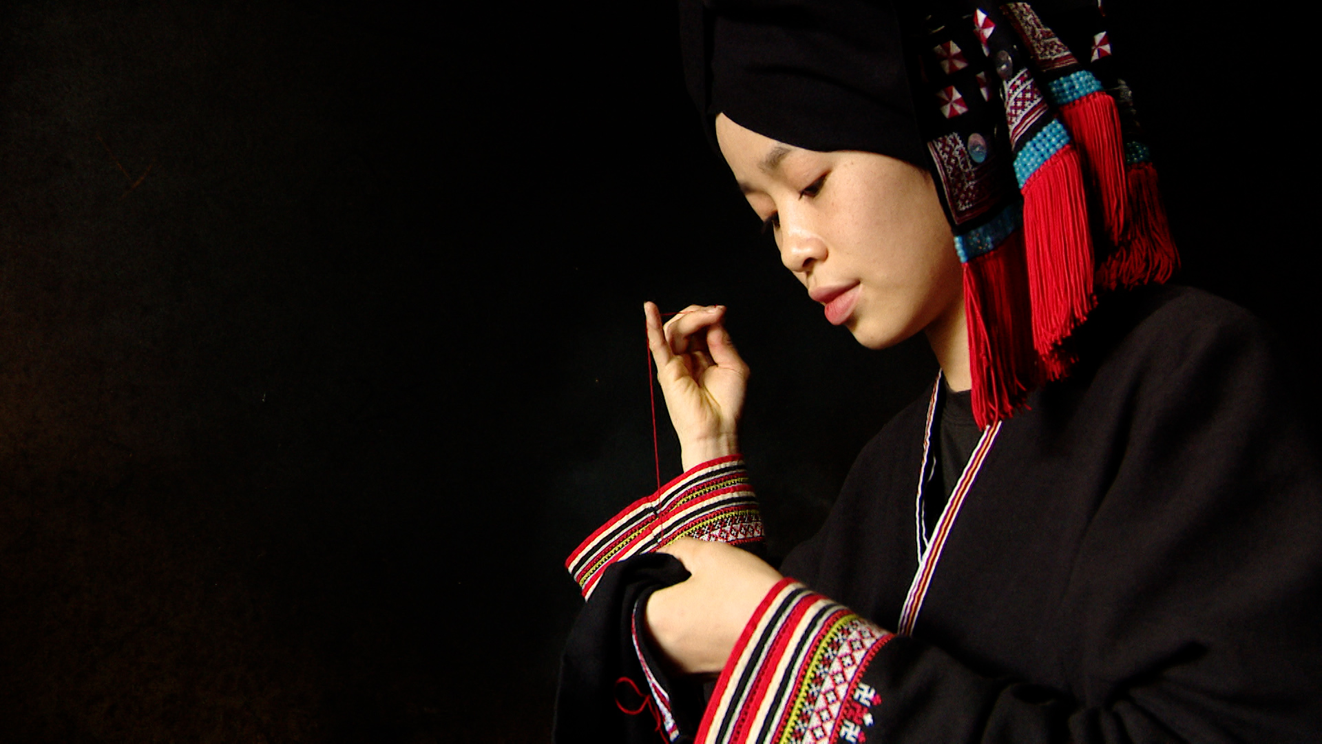Con vistas a la ceremonia del Cap sac, el rito de otorgamiento del nombre que marca el paso del joven a la edad adulta, Dang Thi Hoa lleva tres años dedicándose a confeccionar el traje de su hijo. Se trata de uno de los rituales más significativos del pueblo Dao y, durante su celebración, el muchacho debe vestir un atuendo nuevo, con bordados más elaborados y luminosos que los de uso cotidiano.