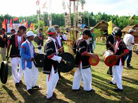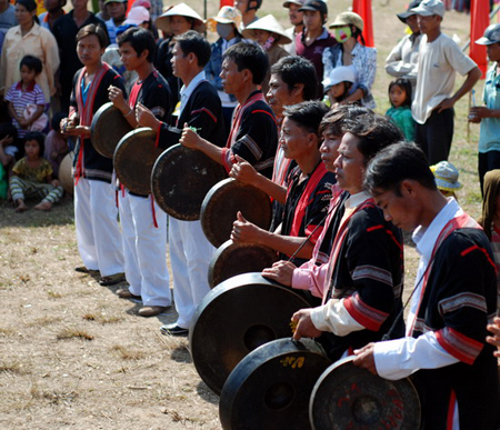 Ubicada en el centro de la comuna de Xuan Lanh, la casa comunal de los Cham H’Roi, resuena a veces con ritmos de tambores, gongs y batintines. En su tiempo libre, los jóvenes aldeanos piden a los artistas tocar instrumentos musicales para escuchar y más importante, aprender las técnicas de ejecución. Entre las interpretaciones, destacan siempre el toque de tambor a dúo porque es una técnica que combina los ritmos de impromptu. En festividades importantes, los lugareños consideran imprescindible la interpretación de tambores a dúo. Esta presentación destaca en el rito sagrado de veneración a los genios de los Cham H’Roi. Mang Nuu, administrador del villorrio Ha Rai reveló: “La interpretación de tambores a dúo es un procedimiento original en el sacrificio de búfalo, bodas y ceremonias para desearles a los aldeanos salud en el mes de marzo. La resonancia de los tambores simboliza el rezo elevado a los genios para pedirles bendecir con salud y la prosperidad a los lugareños”.