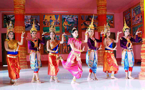 En las fiestas tradicionales, cuando resuenan los tambores y la música de cinco tonos “ngu am”, todos, tanto los jóvenes como las personas mayores, se dejan llevar por el ritmo seductor de las danzas colectivas. La más popular se llama Ram Vong, o Lam Thon. Al tomar parte en ella, cada pareja se mueve en forma de círculo, lanzándose miradas amorosas.