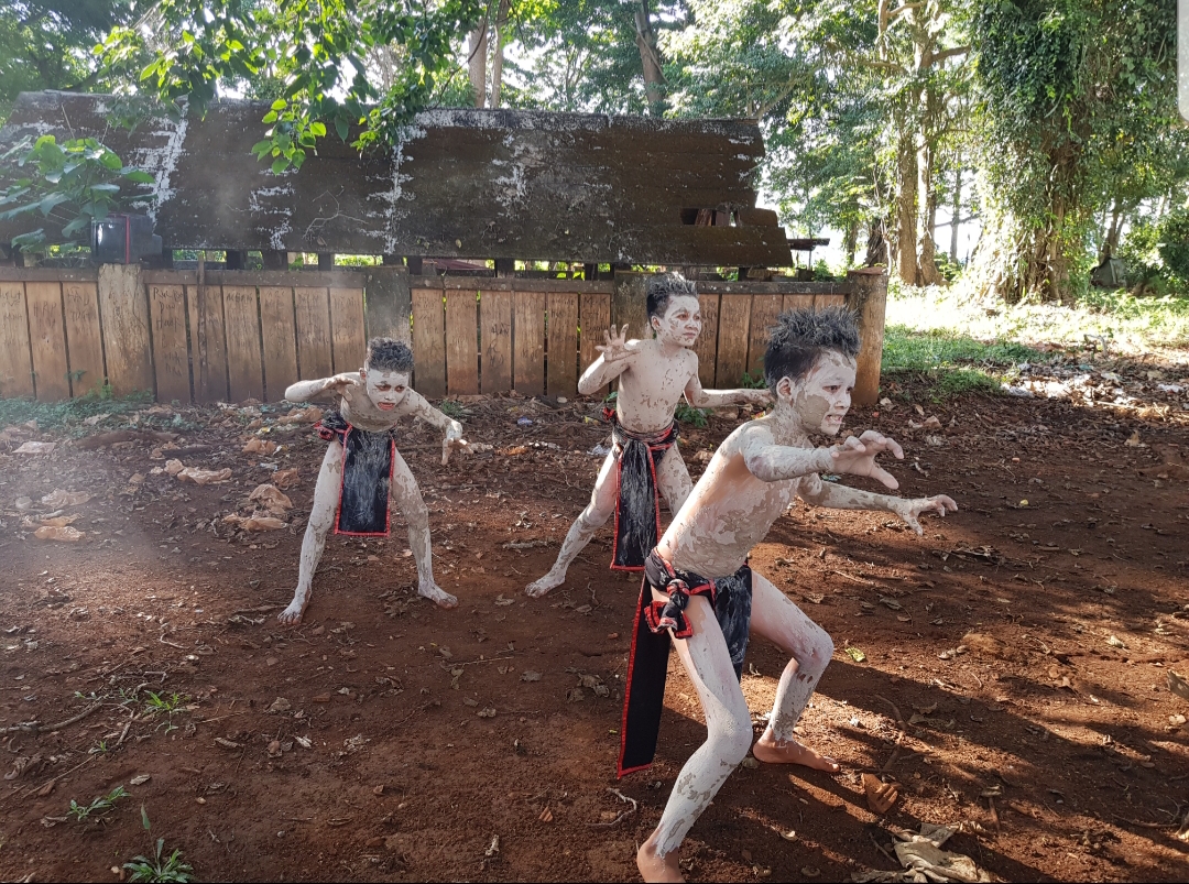 Niños desempeñan el papel del espíritu de barro. |