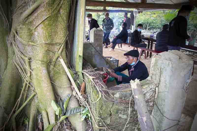 Todos los años, al comienzo de la primavera, bajo el árbol secular que yace en el montículo más alto de la aldea de Dong Cam, esta comunidad étnica acompaña al chamán Trieu Huu Phau, quien sostiene un viejo libro escrito en el antiguo idioma Dao y ora en un murmullo, rodeado de ofrendas como aguardiente, carne y papel votivo para adorar a los dioses.