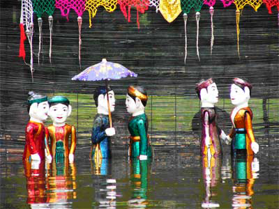 El “Múa rối nước” es el nombre de la danza de los muñecos en el agua, así denominan los vietnamitas a esta forma peculiar que nos traslada a tiempos lejanos. Ya en el año1121, las marionetas de agua fueron presentadas en espectáculos especiales para felicitar la longevidad del rey. De muñecos creados por separado, se fueron formando gremios que presentaban sus títeres en funciones del teatro con historias interesantes al servicio del público. El investigador de teatro de guiñol acuático, Nguyen Huy Hong, dijo: “Las marionetas acuáticas son productos de la llanura del Norte, que puede considerarse la cuna de los vietnamitas. Al principio las llamaron “con trò”, un tipo de juguetes que imitan los movimientos del hombre. La cultura de los Viet se caracteriza por el cultivo del arroz de agua. Los habitantes de esta zona anegada elevan la tierra para construir sus casas, hacer presas y estanques en las aldeas antiguas del norte, marco incomparable para los escenarios de las marionetas acuáticas.”